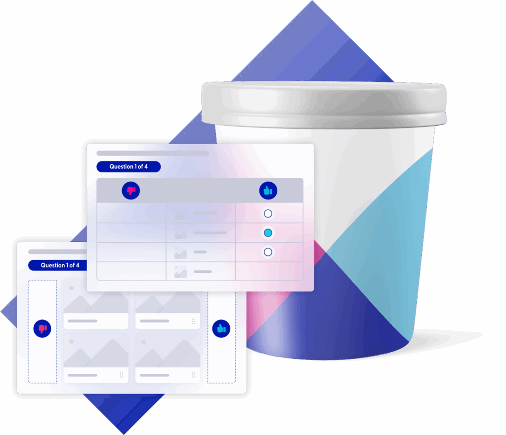 Puoi testare fino a 40 elementi per sondaggio, con feedback diretto dal tuo pubblico target. Servono almeno 8 elementi per un buon design.